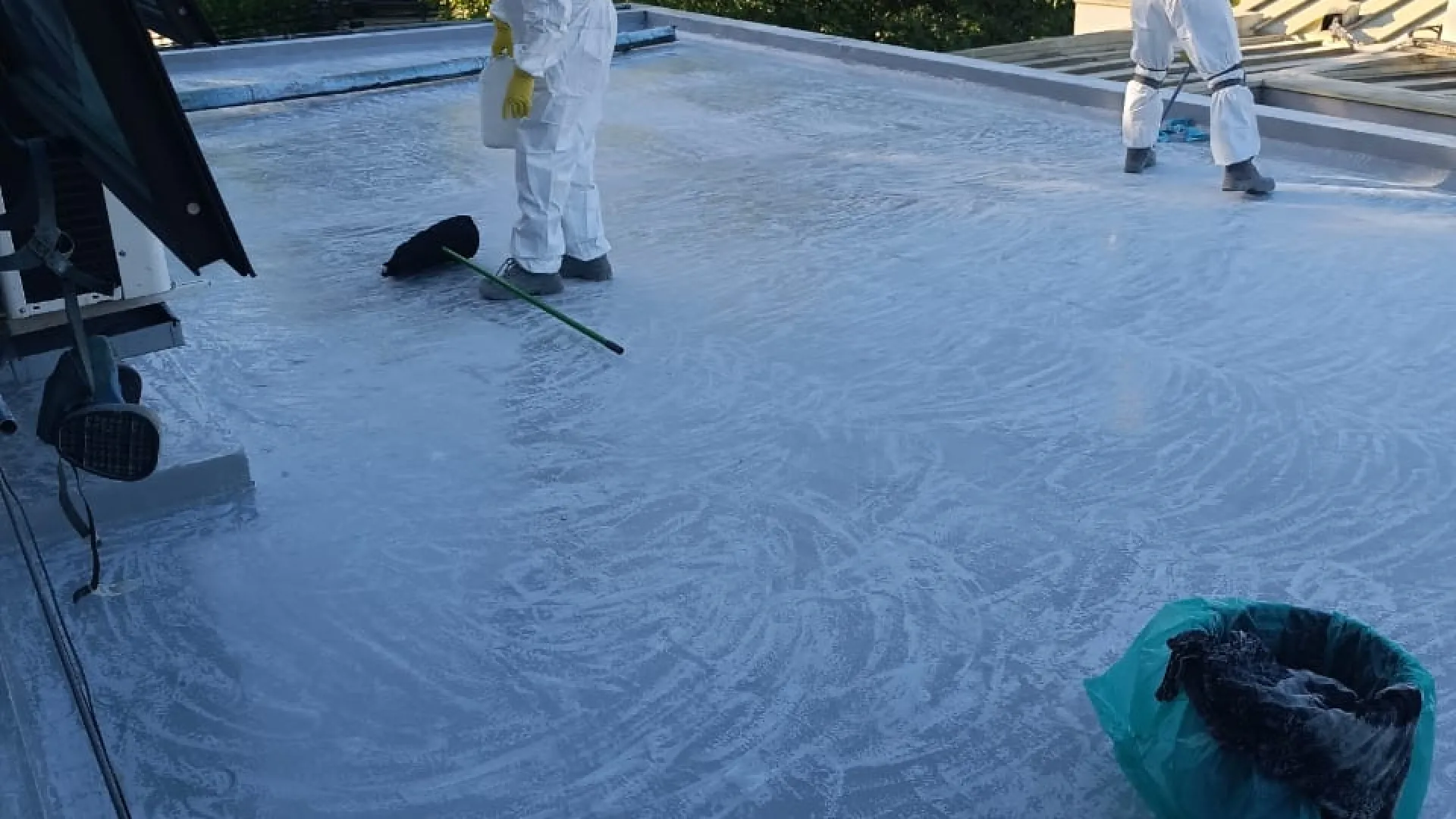 Para abordar de forma efectiva el problema, se optó por impermeabilizar con Poliurea en Concepción. Este procedimiento reemplazó completamente el sistema fallido anterior y ofreció una solución monolítica, sin juntas, de alta resistencia. La aplicación de Poliurea en Concepción se desarrolló en distintas fases técnicas, cuidadosamente ejecutadas por el equipo especializado.