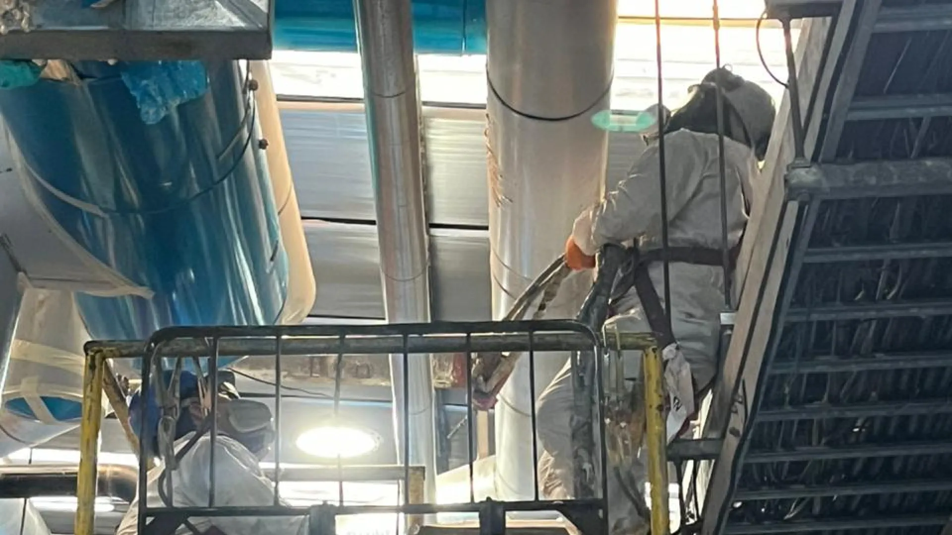 Ante estos desafíos, se optó por la aplicación de aislación con poliuretano en Coronel mediante inyección directa en las líneas de amoníaco. Esta técnica permite una cobertura completa y sin fisuras, eliminando los puentes térmicos y las cavernas de aire que podrían convertirse en puntos de fuga o acumulación de gases.